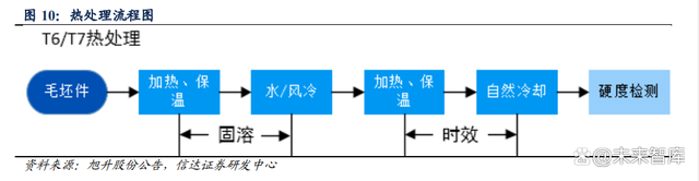 一体压铸技术趋势明确,新能源车有望进一步降本增效。大型一体化压铸一般指 6000T 以上的压铸技术,一体压铸有利于减少零部件个数,加快生产效率,减轻质量,从而降低生 产成本。对于目前采用一体压铸后底板的 Model Y 来说,采用大型一体化压铸技术:1)总 重量下降 30%,制造成本下降 40%;2)零件数量较 model 3 减少 79 个,焊接点由 700- 800 个降低至 50 个;3)不需要进行热处理,制造时间由1-2 小时缩短至 3-5 分钟。 压铸成型之后需要热处理提升产品性能。一般压铸过程中,压铸成型之后需要进行热处理 步骤,热处理可以提高沉淀硬化铸造和热轧状态合金的强度与硬度,从而弥补普通铝合金 硬度低,耐磨性较差,摩擦系数大等劣势。而热处理一般有固溶、时效热处理两种工艺:1) 固溶使合金中各种相充分溶解,强化固溶体,并且使合金的韧性和抗腐蚀性能得到提高;2) 时效处理又分为自然时效和人工时效,是指使材料在室温或者较高温度下存放较长时间的 工艺。